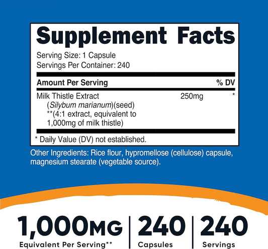 Nutricost Milk Thistle 1000mg Equivalent Capsules (2 Pack) - 4:1 Extract, Vegan, Non-GMO, Gluten Free - 240 Caps
