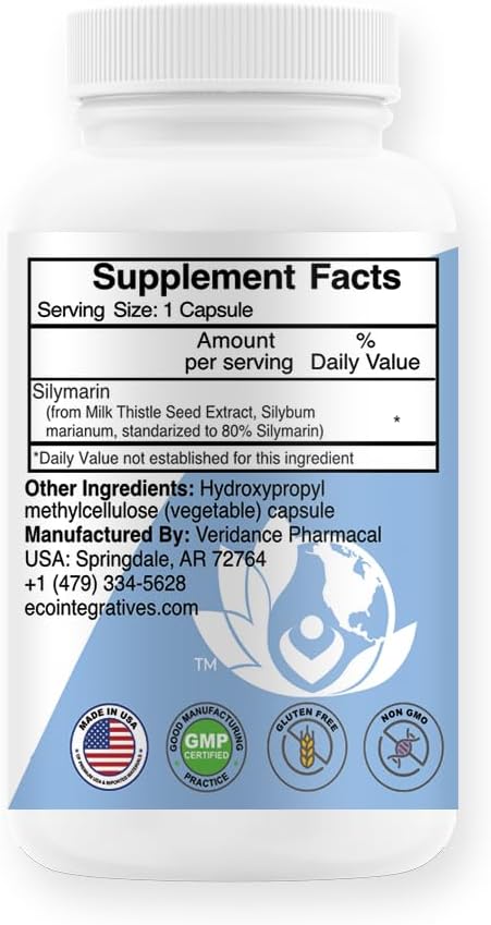 Vegan Silymarin 300 mg Capsules - Standardized Milk Thistle Extract for Liver and Kidney Health - Antioxidant Liver Detox and Cleanse - 180 Vegetarian Capsules