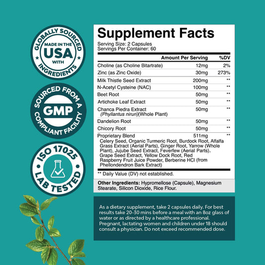Premium Organic Liver Support Capsules with Milk Thistle, Artichoke, Beetroot - Boosts Metabolism & Digestive Health - 60 Veggie Caps - Made in USA