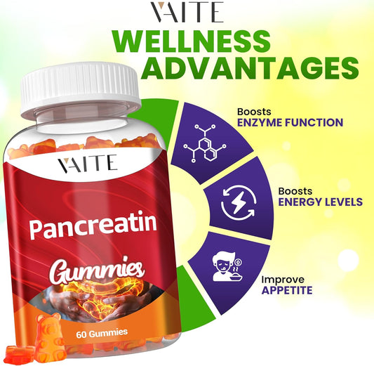 VAITE Pancreatic Digestive Enzymes Gummy 1000mg - Supports Digestion with Protease, Amylase, Lipase - Breaks Down Protein & Carbs - Vegan, Gluten-Free - 60 GummiesVendor:VAITERegular price $229.94 AUDRegular priceUnit price / per-