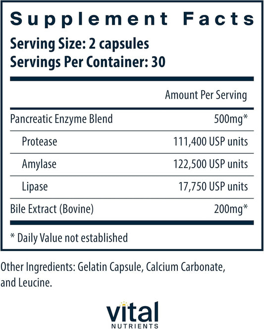 Digestive Enzymes Supplement 500mg | Supports Protein, Fat, and Carb Digestion | Pancreatin & Ox Bile Extract | Gluten, Dairy, Soy Free | 60 CapsulesVendor:Vital NutrientsRegular price $136.51 AUDRegular priceUnit price / per-