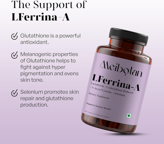 Lactoferrin Supplement with Reduced L-Glutathione for Immunity & Skin Health - 60 Veg CapsulesVendor:MEIBOTANRegular price $158.99 AUDRegular priceUnit price / per-