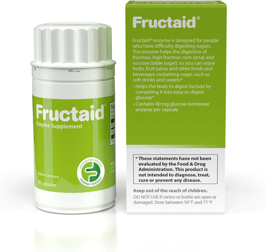Fructaid Enzyme Supplement - 90 Capsules to Help Digest Fruits, Juices, and Sweets, Gluten-Free and Lactose-Free Dietary Supplement