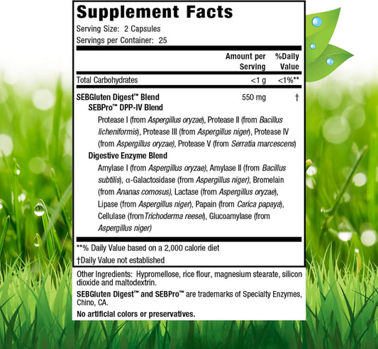 Gluten & Dairy Digestive Aid Capsules - Natural Solution for Breaking Down Wheat Protein & Milk Lactose - 50 Capsules