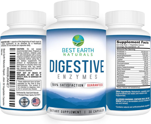 Maximum Strength Digestive Enzymes for Healthy Digestion - 30 Vegetable Capsules by Best Earth Naturals