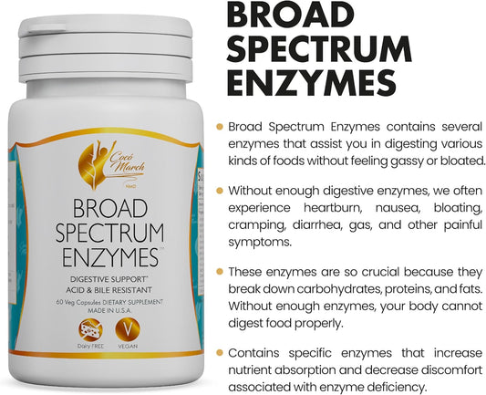 Broad Spectrum Enzymes for Gluten-Lactose-Digestive Support - Vegan, Dairy Free - 18 Enzymes, 460mg - 60 Capsules