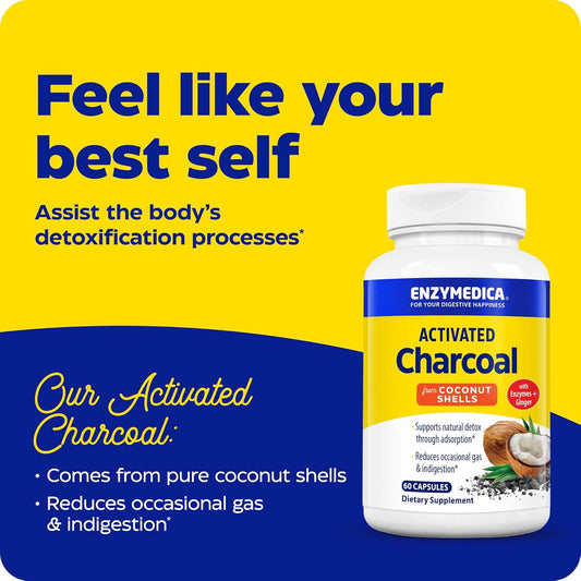 Enzymedica Activated Charcoal Capsules for Gas, Bloating & Indigestion Relief - Natural Detox Support - 60 Count