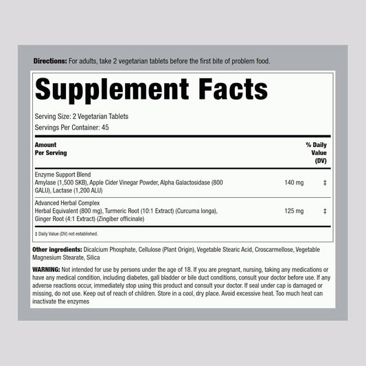 Piping Rock Extra Strength Bloat & Gas Support Supplement with Enzymes, Turmeric & Ginger - 90 Tablets, Non-GMO & Vegetarian