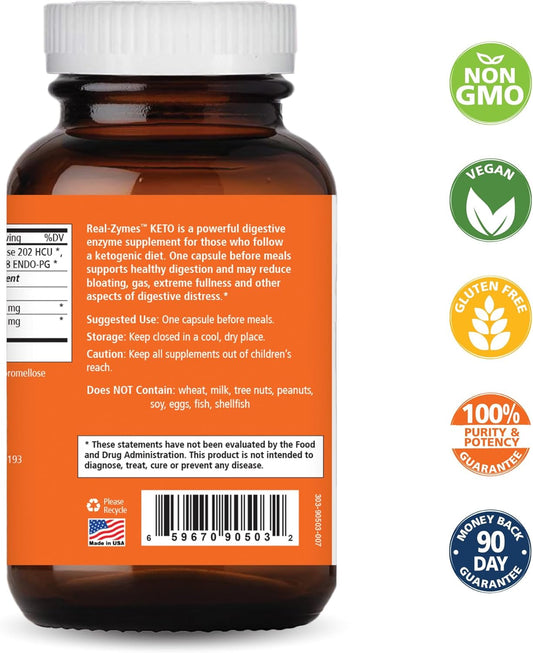 Real-Zymes™ KETO Digestive Enzymes Supplement with Probiotics - Natural Relief for Digestive Issues - 90 Capsules