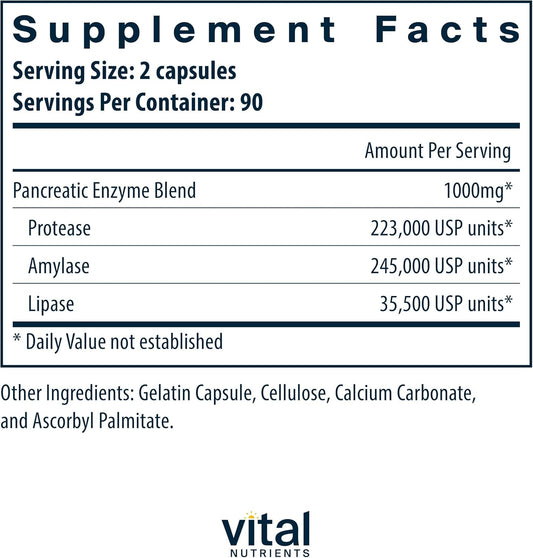 Pancreatic Enzymes 1000mg Supplement with Protease, Amylase & Lipase - 180 Capsules, Gluten, Dairy, and Soy Free
