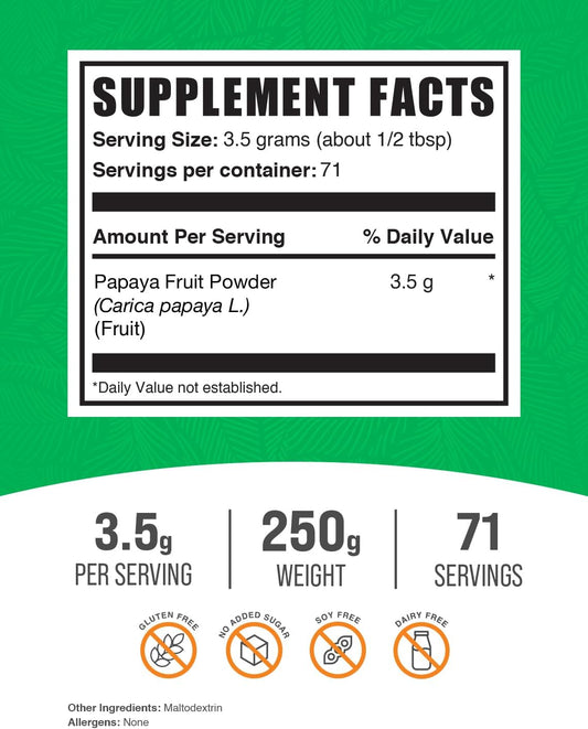 Papaya Fruit Powder Supplement - Digestive Support, Gluten Free, 250g (8.8 oz) - Carica Papaya Powder