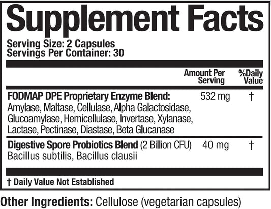Arthur Andrew Medical FODMAP DPE Capsules - Vegan Digestive Probiotics & Enzymes for Relief from FODMAP Intolerance & Highly Fermentable Foods, Non-GMO, 60ct