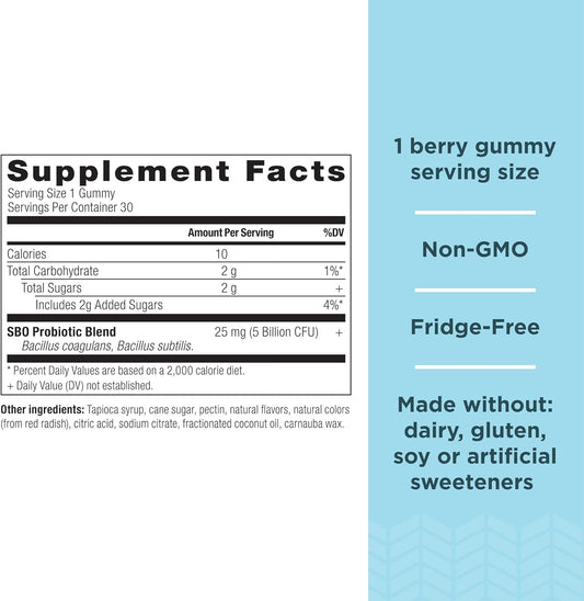 Kids Probiotic Gummies with Berry Flavor, 5 Billion CFUs, Supports Gut Health, Reduces Bloating & Constipation, 30 Count