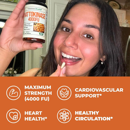 High Potency Nattokinase 4000 FU Supplement for Heart Health & Circulation - Japanese Superfood Enzymes - 60 Capsules - 30-Day Supply - Men & Women's Health Support