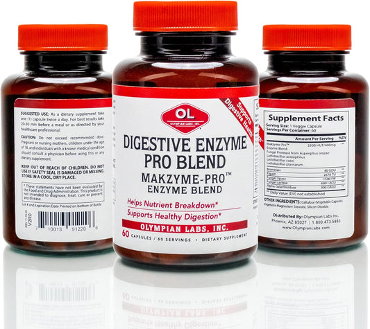 Olympian Labs Makzyme-Pro Enzymes - 60 Capsules, Breaks Down Proteins, Carbs, Fats, Oil & Milk - 60 Servings