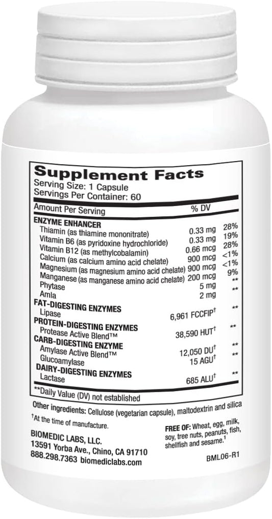 Vegetarian Digestive Enzyme Supplement for Bloating Relief - Biomedic Labs RX Gallbladder Formula with Lipase, Protease, and Amylase - 60 Veg Caps