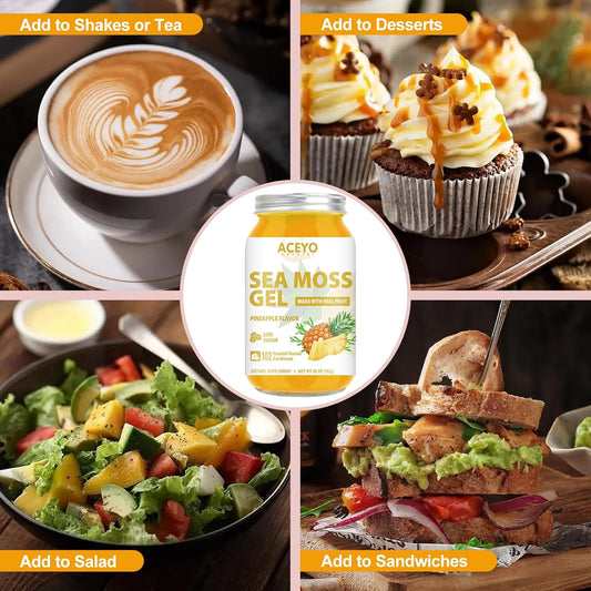 Organic Raw ACEYO Sea Moss Gel (28 oz) - Pineapple Flavored Vegan Supplement with 102 Vitamins and Minerals for Immune and Digestive Support