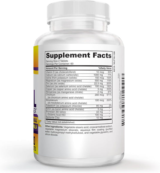 Natural Multiminerals with 72 Trace Minerals - High Potency 2-Month Supplement - Iron Free Formula | 120 Tablets