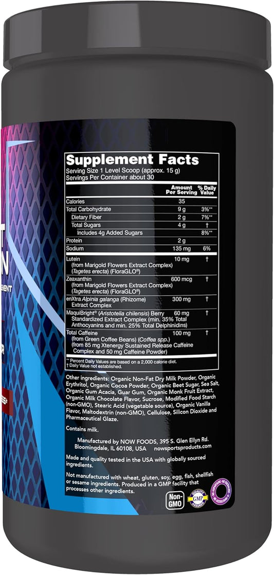 NOW Sports Esport Reaction Supplement - Chocolate Milkshake Flavor - Boost Gaming Performance with Crash-Free Energy and Blue Light Protection - 30 Servings