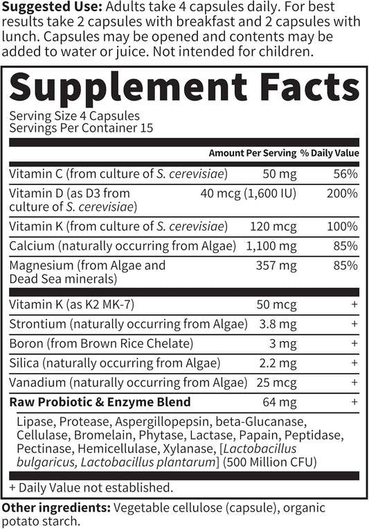 Whole Food Calcium Supplement with Magnesium, K2, Vitamin D3, Vitamin C, and Probiotics - Garden of Life Raw Formula for Women & Men, 60 Capsules