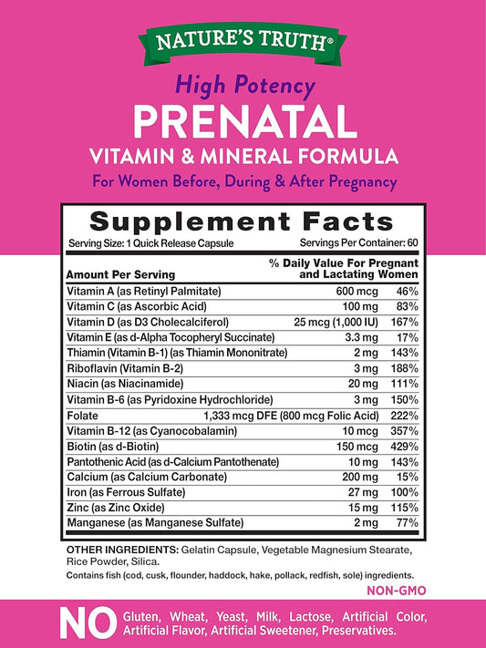 60 Count Nature's Truth Prenatal Vitamins with Folic Acid - Non-GMO and Gluten Free Formula
