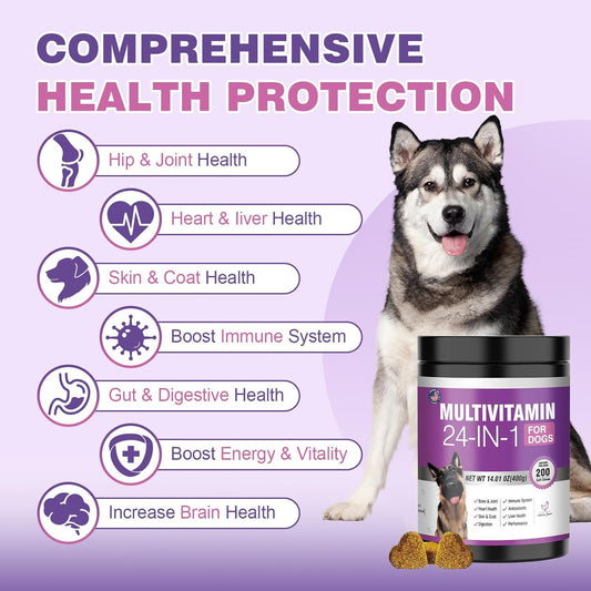 24-in-1 Dog Vitamins & Supplements with Glucosamine, Chondroitin & Omega-3 - Senior & Puppy Multivitamin for Coat, Heart, Joints, Digestion, Immune Support - Chewable Dog Vitamin