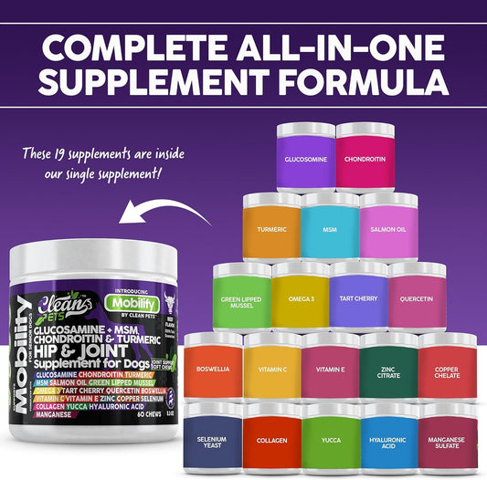 Beef-Flavored Senior Dog Hip and Joint Supplement with Glucosamine, Chondroitin, Turmeric, Hyaluronic Acid, MSM, Salmon Oil, Collagen, Vitamin C, Omega 3 - 1 Pack
