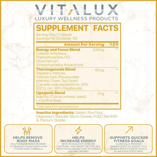 VITALUX Women's BellySlim Supplement - #1 Rated Multivitamin for Weight Loss & Fitness Goals - Ultra Strength with 9 Ingredients - 60 Servings - USA Made & Third Party Tested