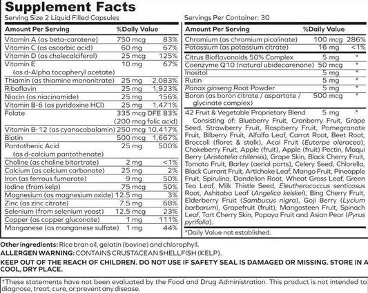 envitamin Ultimate Multivitamin Multimineral with Superfood, 60 Count - Includes 42 Fruit and Vegetable Blend