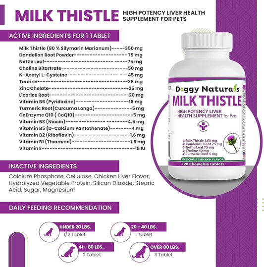 High Potency Milk Thistle Liver Health Supplement for Dogs - 120 Tablets by Pet Health Pharma
