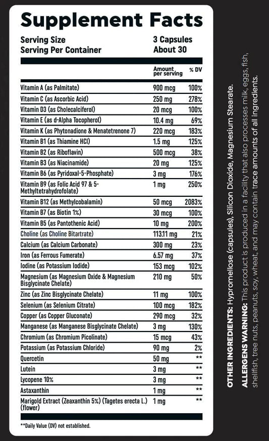 HTLT Supps Multi VIT - Complete Daily Energy and Immunity Supplement with Minerals and Antioxidants for Men and Women (90 Capsules)