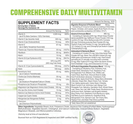 Muscle Pharm Essentials Multi-V+: Athlete's Multivitamin for Energy, Performance & Immune Health - 90 Tablets - 30 Servings