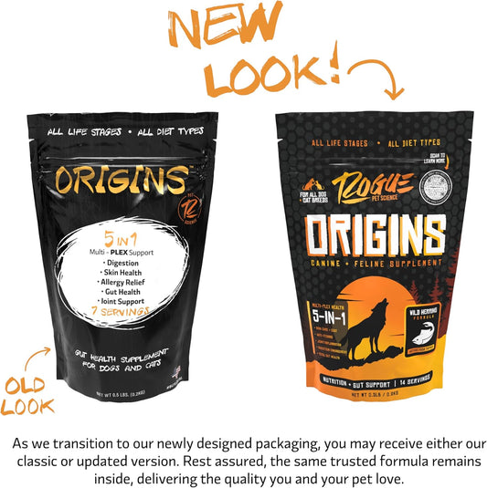 Rogue Pet Science Origins 5-in-1 Dog Supplement with Natural Omega 3 Fish Oil for Healthy Digestion, Skin, Coat, Itching & Joint Inflammation