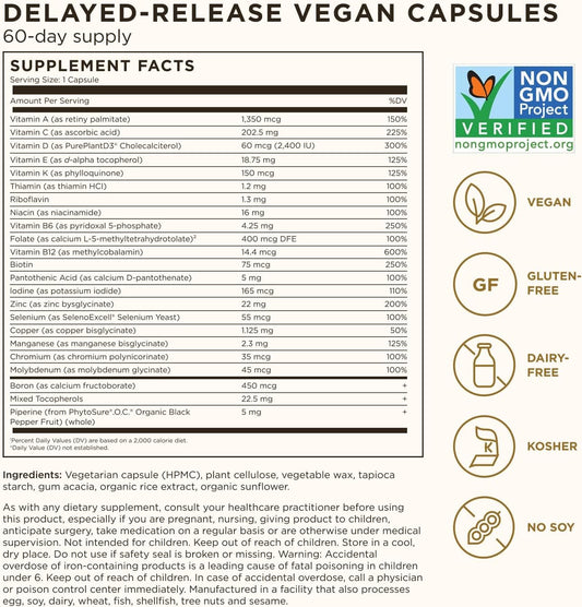 Sustained-Release Daily Multi-Vitamin without Iron - 60 Tablets with Essential Vitamins and Minerals for Immune Health and Overall Wellness