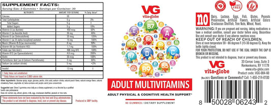VITA GLOBE Adult Multivitamin Gummy with Essential Vitamins - 60 Count Pack - Vitamin C, D, E, B6, B12, Biotin, Pantothenic Acid, Folate - Daily Supplement for Wellness and Immune Support