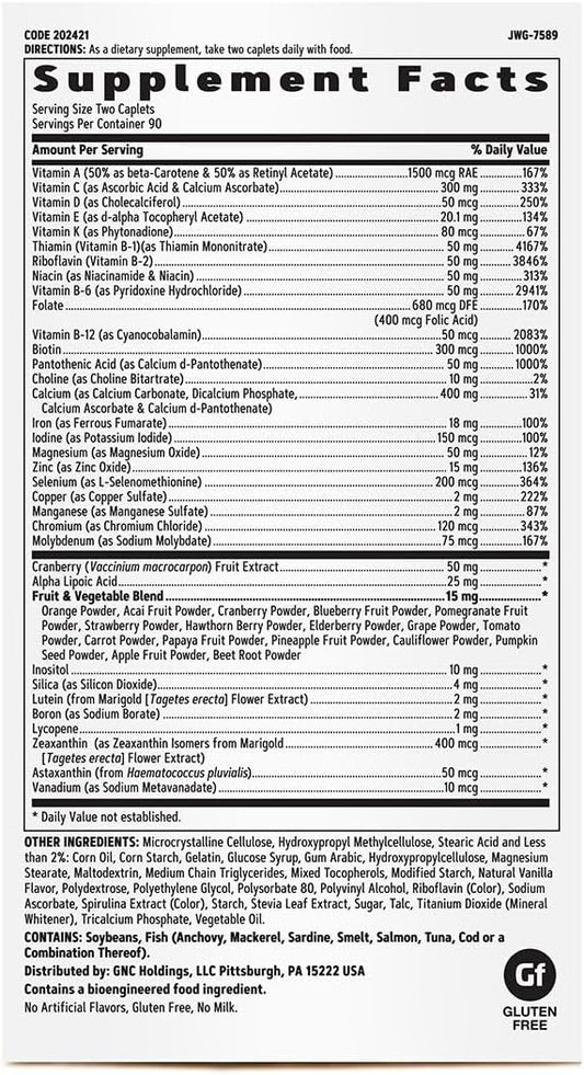 GNC Women's 50 Plus Multivitamin for Healthy Bones, Eyes, Memory, Brain, and Skin | Includes Vitamin D, Calcium, and B12 | Boosts Energy | 60 Caplets
