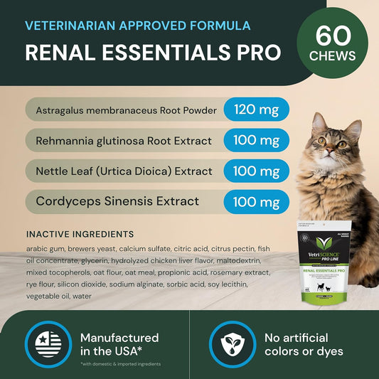 Renal Essentials Pro - Kidney Supplement for Dogs & Cats - Supports Feline & Canine Renal Health - 60 Chews