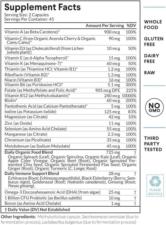 Whole Food Plant-Based Multivitamin with Key Daily Essentials - Doctor Formulated Nutritional Roots Multivitamin+ - Includes Vitamin D3+K2 and Probiotics