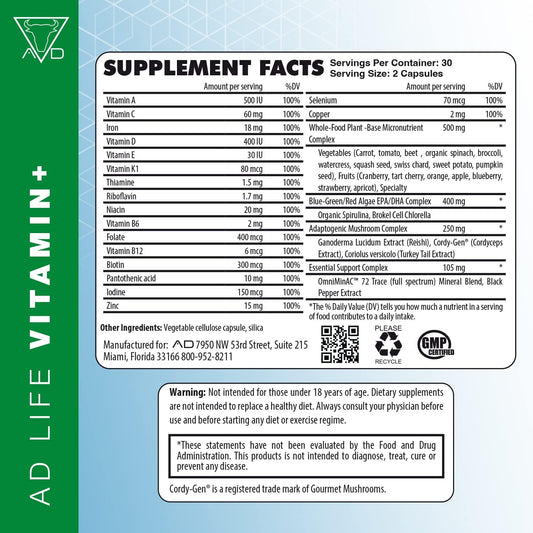 Project AD Vitamin+ Multimineral Multivitamin Supplement - Complete Antioxidant, Energy, and Immune Support - 60 Servings