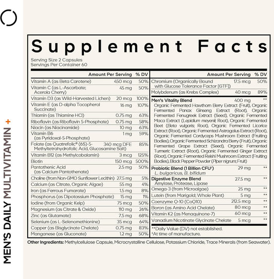 Organic Whole Foods Men's Daily Multivitamin Supplement with 25+ Vitamins & Minerals, Probiotics, Omega-3, 2 Pack