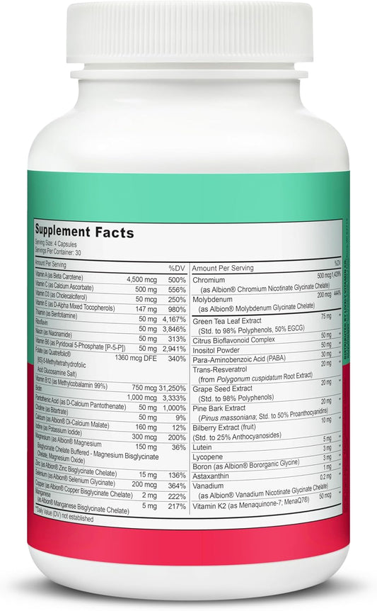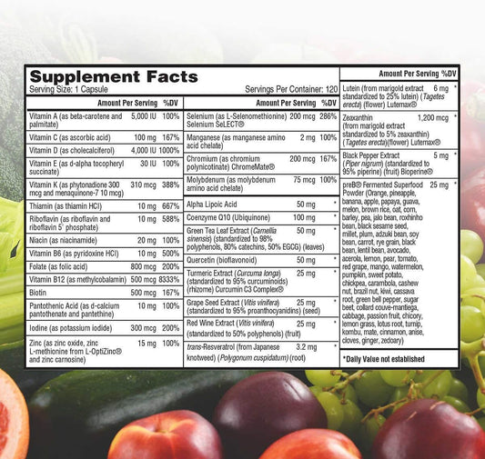 LIVELY VITAMIN CO. Multivitamin Supplement - 37 Essential Nutrients for Energy, Memory, Immune Support, Heart and Brain Health - Antioxidants - 120 Veg Caps - Gluten Soy Dairy Free