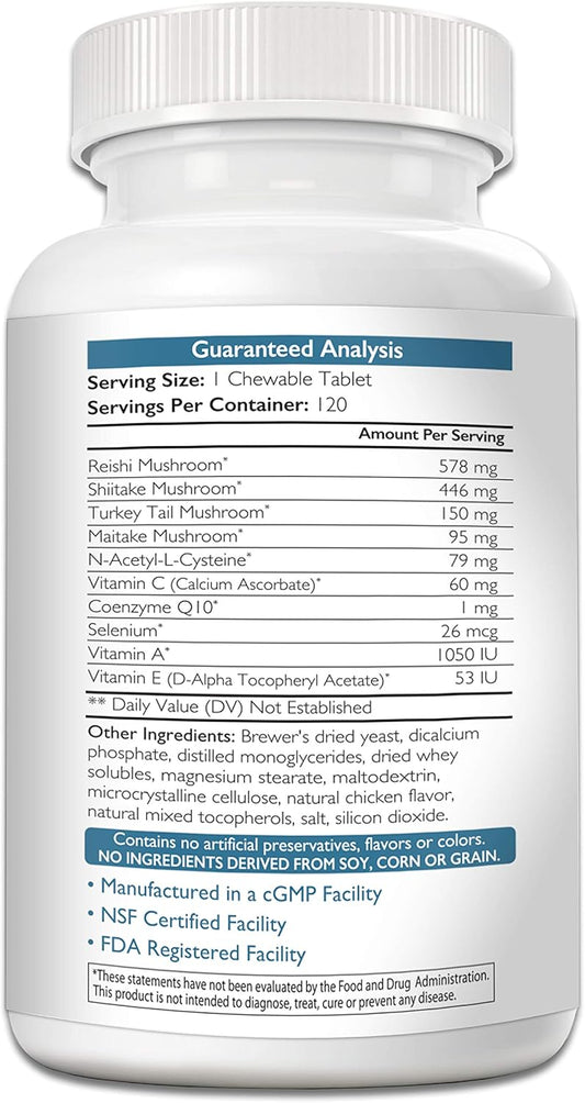 Nutrition Strength Immune Support & Antioxidant Mushrooms for Dogs with Coenzyme Q10 - 120 Chewable Tablets