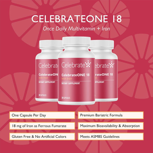 CelebrateONE Bariatric Multivitamin with 18mg Iron - Daily Supplement for Gastric Bypass & Sleeve Gastrectomy - 90 Capsules