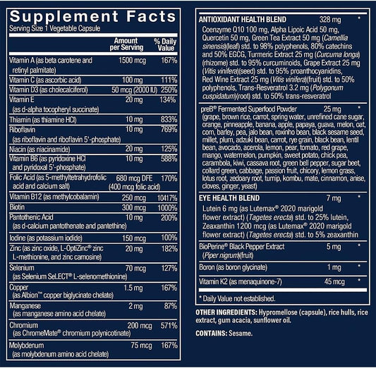 One-Per-Day Multivitamin with 25+ Vitamins, Minerals, Plant Extracts & Zinc 50mg - 90 Vegetarian Capsules