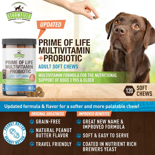USA Made Dog Multivitamin Soft Chews with Glucosamine, Probiotics & Omega 3 | 120 Grain Free Treats for Dog Health & Wellness