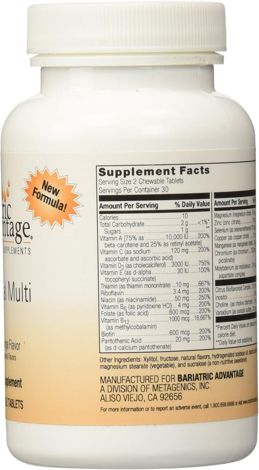 Bariatric Advantage Essential Multivitamin - Iron-Free with 200 DV Key Nutrients - Supports Trace Minerals - Orange - 60 Tablets