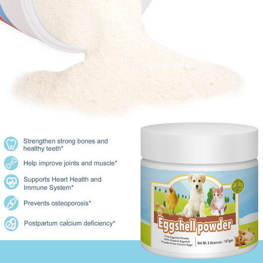 Guanshiya Eggshell Powder Calcium Supplement (6.6 oz) for Dogs & Cats - Promotes Strong Bones, Healthy Joints, & Teeth, Safe Bone Meal Alternative