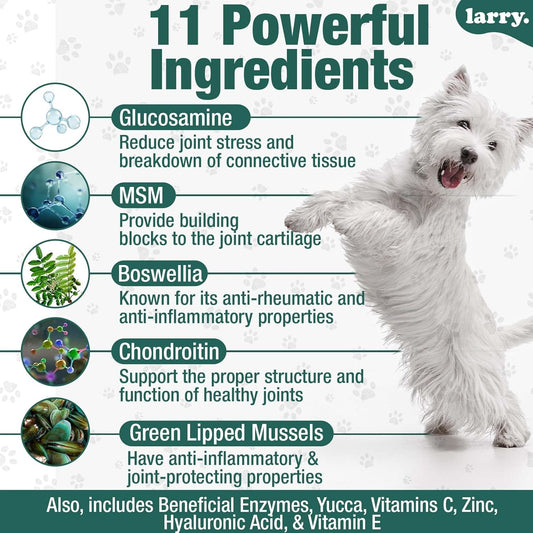 Larry's Dog Hip and Joint Care Supplement with Chondroitin, MSM, Hyaluronic Acid & Glucosamine - 120 Soft Chews for All Breeds & Sizes