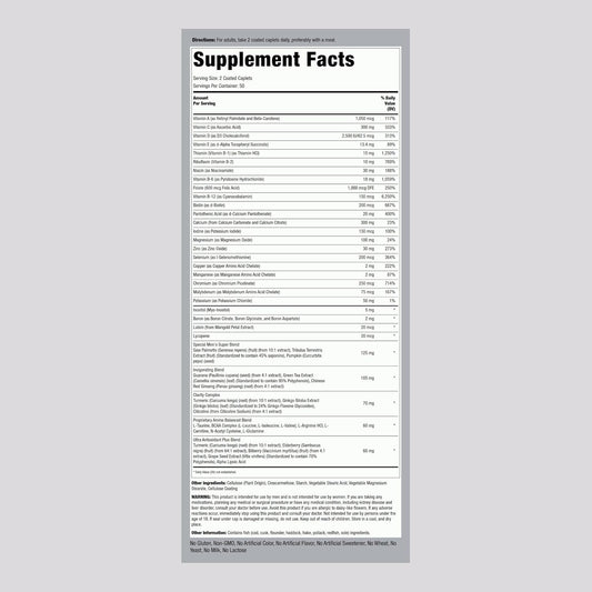 Men's Over 50 Multivitamin Caplets with Vitamin D3, Potassium, Folate - 100 Count - Non-GMO, Gluten Free