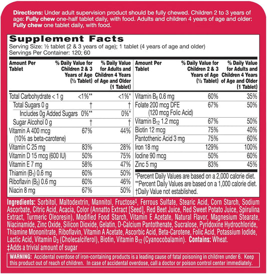 Flintstones Children's Multivitamin with Iron Chewable Tablets, 60-Count x 3 Packs